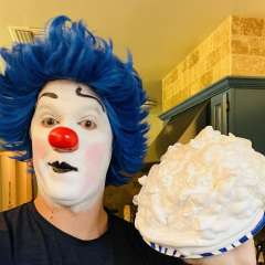 Big Bird the Clown had his face smooshed into a pie by clownola